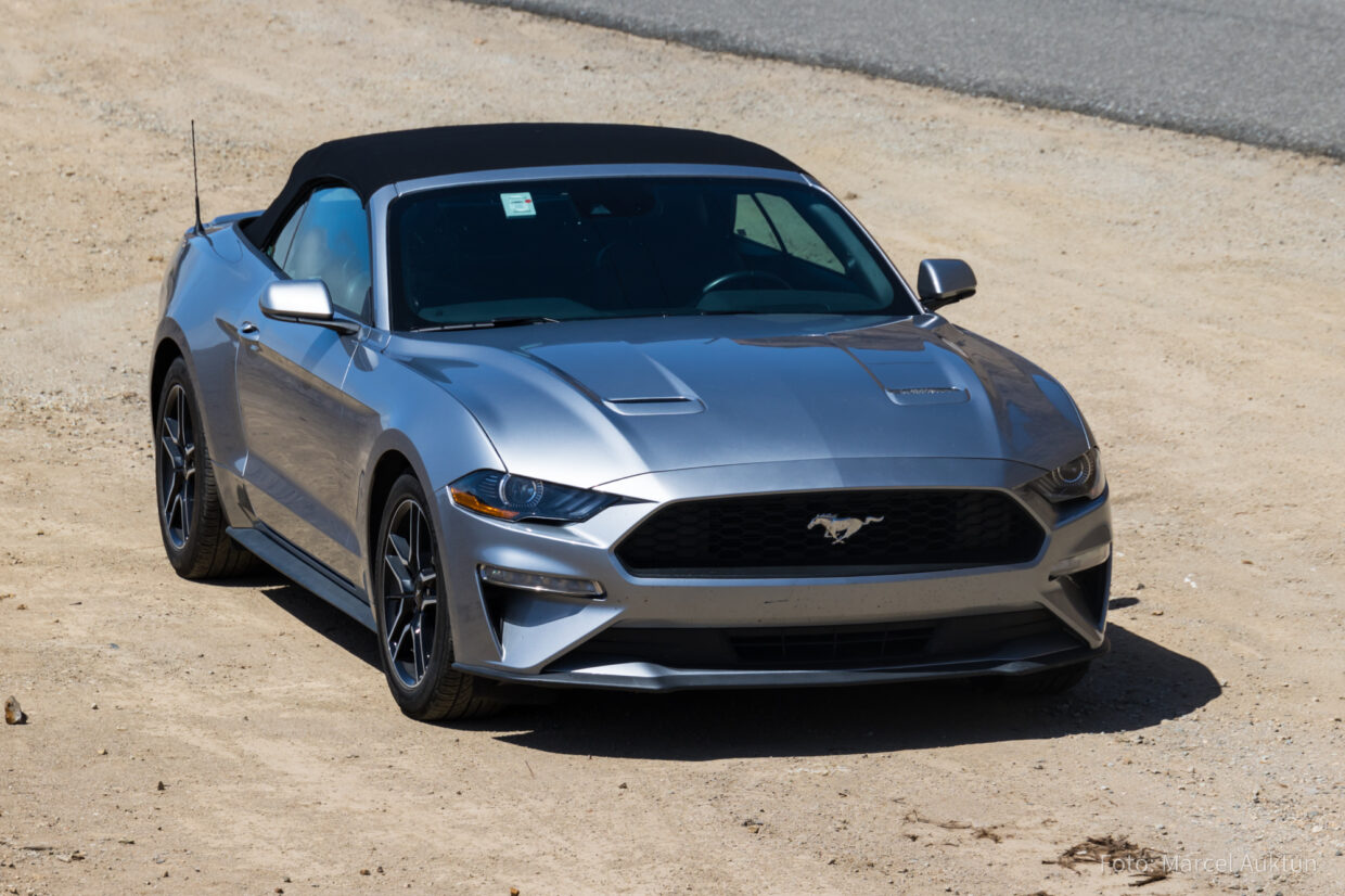 Unser Mietwagen für die Woche: Ein noch recht neuer Ford Mustang, in der spritsparenden Eco Boost-Variante. An schönen Tagen lässt sich das Dach sogar öffnen!